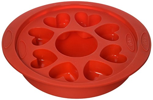 Orka OD250101 Silicone & Nylon Round Cake with 8-Mold Heart Pan, Red