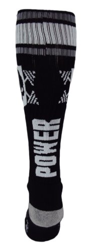 -. Feature : FOR EXPLOSIVE PERFORMANCE - MOXY Socks Powerful Power Skull Knee-High Deadlift Socks bring you an advanced footwear solution with gym-ready flare. Breathable, tight-knit, offering support and featuring a smooth surface, these socks are truly performance-ready. / TIGHT YET BREATHABLE - The Powerful Power Skull Knee-High Deadlift Socks are tightly woven and super stretchy, offering a superior compression that promotes circulation. But with reciprocated heel and toe ventilated mesh tops, they're also completely breathable. / ADVANCED SUPPORT - Ready for explosive performance? These socks feature serious arch support as well as Achilles Tendon cushion, which helps prevent injuries in concern areas, and are knee-high for full coverage. / KNEE HIGH FOR DEAD LIFTS - Sick of banging your shins when performing Olympic lifts and power movements such as deadlifts, cleans, and snatches? So are we. That's why we invented The Bomb, a performance sock with enough length to provide a smooth surface that doesn't snag like skin. / PRODUCT SPECIFICATIONS - Package includes (1) pair of MOXY Socks Powerful Power Skull Knee-High Deadlift Socks. Unisex one size fits all: Mens sizes 5-15, Womens sizes 6-14.