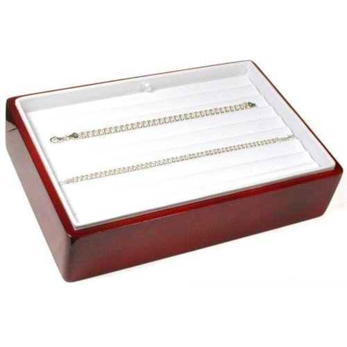 -. Feature : This is a new stackable 8 slot white faux leather&rosewood finish bracelet display tray / It is lined with white faux leather / This is perfect for showcase or counter top use / This complements the styling of your most elegant pieces / Measures approximately 9" x 6" x 2 " (230 x 151 x 50 mm)