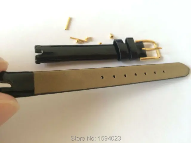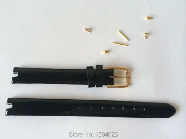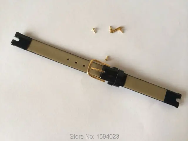 | [해외]10 미리메터 (Buckle10mm) T003209 T-TREND 고품질 골드 도금 핀 버클 + 블랙 정품 가죽 시계 밴드 스트랩 |