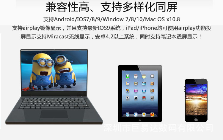 3、简化发现和设置,用户可以迅速在设备间传输视频。Miracast用户可以尽情在大屏电视上浏览智能手机拍下的照片,通过会议室投影仪实时共享笔记本屏幕,或者在平板电脑上收看家庭电视机顶盒的直播节目。游戏、商务演示的利器!