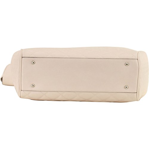 Faux-leather construction pops with chic quilted detailing.