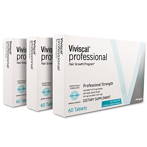 -. Feature : Viviscal - Professional Strength Hair Growth Supplement- 3 Pack (3 x 60 tablets) / Nourish thinning hair and promote existing hair growth with AMINOMAR, the groundbreaking, clinically proven marine complex available exclusively in Viviscal supplements. / Contains vitamins and minerals your hair needs to grow strong, including Vitamin C, Biotin, Niacin, Vitamin D, Iron, Zinc, and Omega-3 Fatty Acids / Healthy hair starts from within, Viviscal offers scientifically formulated products that promote healthy hair growth from the inside out!