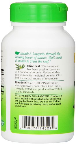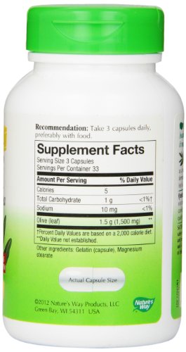 -. Binding : Health and Beauty -. Brand : Nature's Way -. Label : Nature's Way -. Manufacturer : Nature's Way -. ProductGroup : Health and Beauty -. ProductTypeName : HEALTH_PERSONAL_CARE -. Publisher : Nature's Way -. Studio : Nature's Way -. Title : Nature's Way Olive Leaf, 100 Capsule