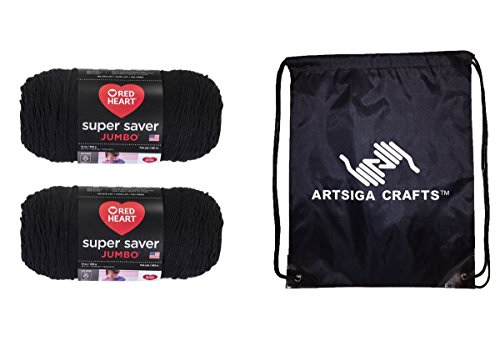 Red Heart Super Saver Jumbo Yarn (2-Pack) Black E302C-0312 with 1 Artsiga Crafts Project Bag