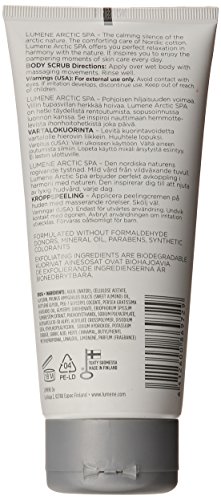-. Binding : Health and Beauty -. Brand : Lumene -. EAN : 0796433456438 -. Feature : The skin-renewing granules together with the massaging movements remove gently the dead skin cells and stimulate the micro-circulation / The wellbeing of the skin will be promoted and skin gains back its radiant look / Body scrub contains moisturizing, protecting and nourishing Nordic cotton extract / You will feel relaxed and your skin will be luxuriously soft, smooth -. IsAdultProduct : 0 -. Label : Lumene Oy -. Manufacturer : Lumene Oy -. Model : 86972 -. MPN : 86972 -. NumberOfItems : 1 -. PackageQuantity : 1 -. PartNumber : 86972 -. ProductGroup : Beauty -. ProductTypeName : BEAUTY -. PublicationDate : 2015-02-20 -. Publisher : Lumene Oy -. ReleaseDate : 2015-04-24 -. Studio : Lumene Oy -. Title : Lumene Arctic Spa Body Scrub, 6.8 Fluid Ounce -. UPC : 796433456438