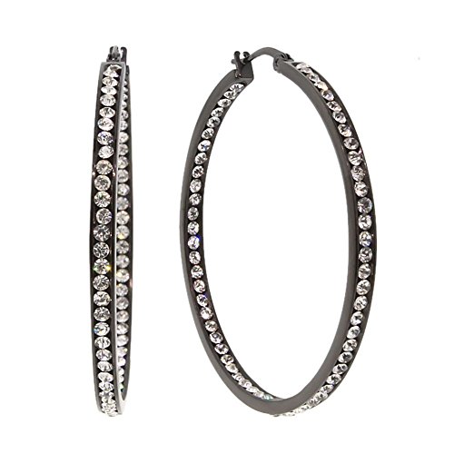 -. Title : 2" Stunning Stainless Steel Black High Shine Inside-Out Hoop Earrings With CZ