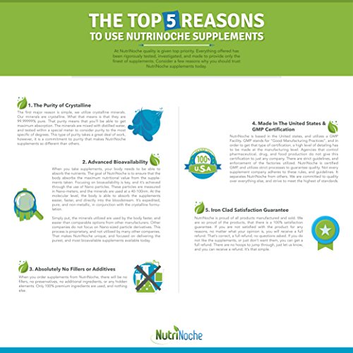 -. Feature : ⭐ REINFORCE YOUR BONES & TEETH: The NutriNoche liquid calcium supplement utilizes crystallineminerals to deliver an extremely pure product with purity levels of almost 100%. That's why this formula will be instantly absorbed by your body and it will help fortify your bones and teeth as well as help maintain proper nerve and muscle function. / ⭐ MAXIMUM BIOAVAILABILITY: A supplement rich in a mineral or a supplement means nothing ifyour body is not able toabsorb these nutrients. With NutriNoche supplements however, you can rest assured that bioavailability is not just guaranteed but also accelerated with the use of Nano particles. Of course, this procedure is expensive but it's what delivers the purest and fastest-absorbing supplements. / ⭐ ABSOLUTELY NO FILLERS OR ADDITIVES: With only 100% premium ingredients and high-standardmethods used, NutriNoche is able to deliver a calcium supplement completely free of fillers, preservatives, additional ingredients, fillers or any hidden elements that could harm you in any way. / ⭐ USA-MADE & GMP CERTIFIED FACILITY: All our supplements, including this potent calcium formulaare manufactured right here in the US in a GMP certified facility. The guidelines might be strict but it's the only way to ensure a safe and premium-quality product that adheres to the highest of standards. / ⭐ IRON CLAD 100% SATISFACTION GUARANTEE: Here at NutriNoche, we are proud of all theproducts we develop and manufacture. In fact, we use them ourselves every day. That's why we want you to get in touch with us if you are not 100% satisfied with your purchase and will offer you a no-questions-asked, 100% full refund. It's that simple!