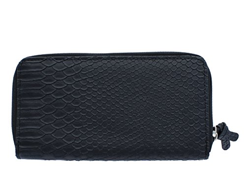 Kenneth Cole Reaction Womens Napa Zip-Around Urban Organizer Wallet (BLACK MATT SNAKE)