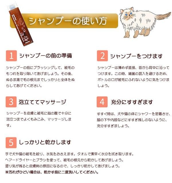 | 人間の肌よりもデリケートなワンちゃん・ネコちゃんにも安心して使っていただける低刺激・弱酸性のアミノ酸シャンプーです。100%天然由来原料を使用し、合成界面活性剤・人工着色料・防腐剤・合成保存料は一切含まれておりません。天然ハーブエキスとスクワランの保湿成分でリンス不要。アミノ酸マイルド洗浄成分で泡立ちが豊かで泡切れバツグン!!洗いあがりもサッパリ♪ |