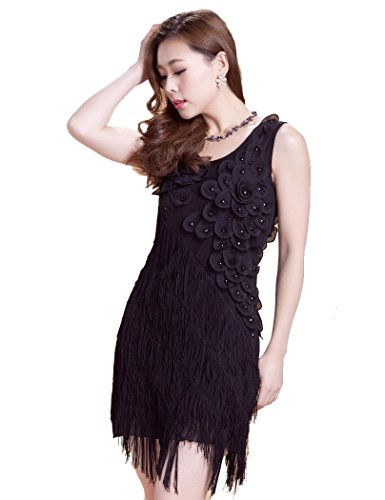 -. Title : KAYAMIYA Women's 1920s Beaded Fringe Irregular Hem Floral Flapper Art Deco Dress