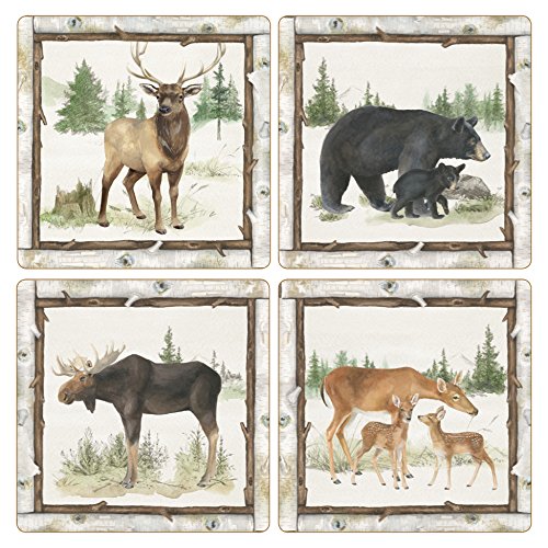 CoasterStone AS10179 "Family Cabin" Absorbent Coasters (Set of 4), 4-1/4", Multicolor