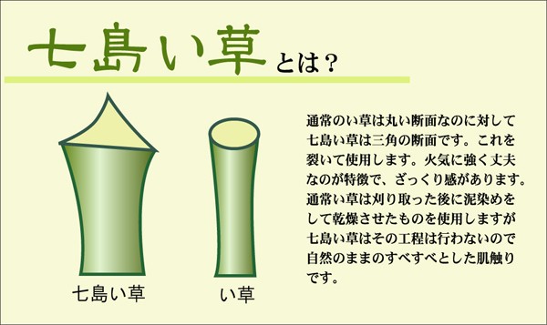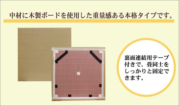 表地=七島い草 中材=フェルト3mm+木製ボード 裏=連結テープ付き