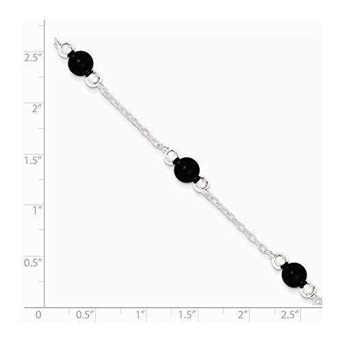 Sterling Silver 9inch Polished Simulated Onyx Anklet 9" (6mm)