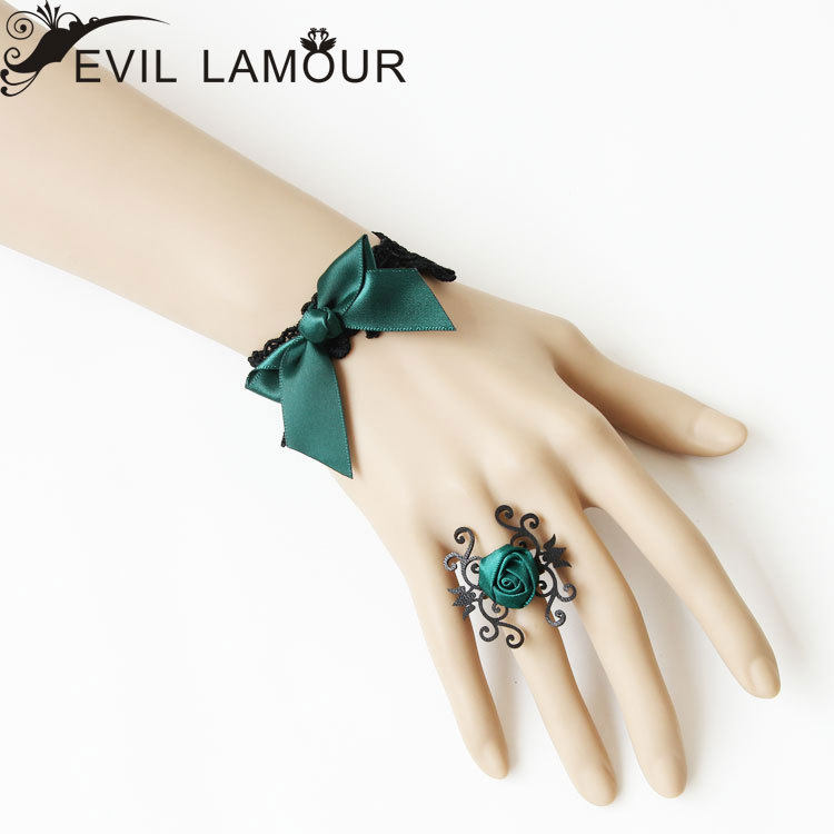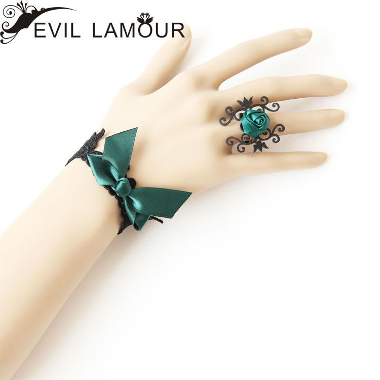 【材料】:黑色蕾丝,墨绿色丝带