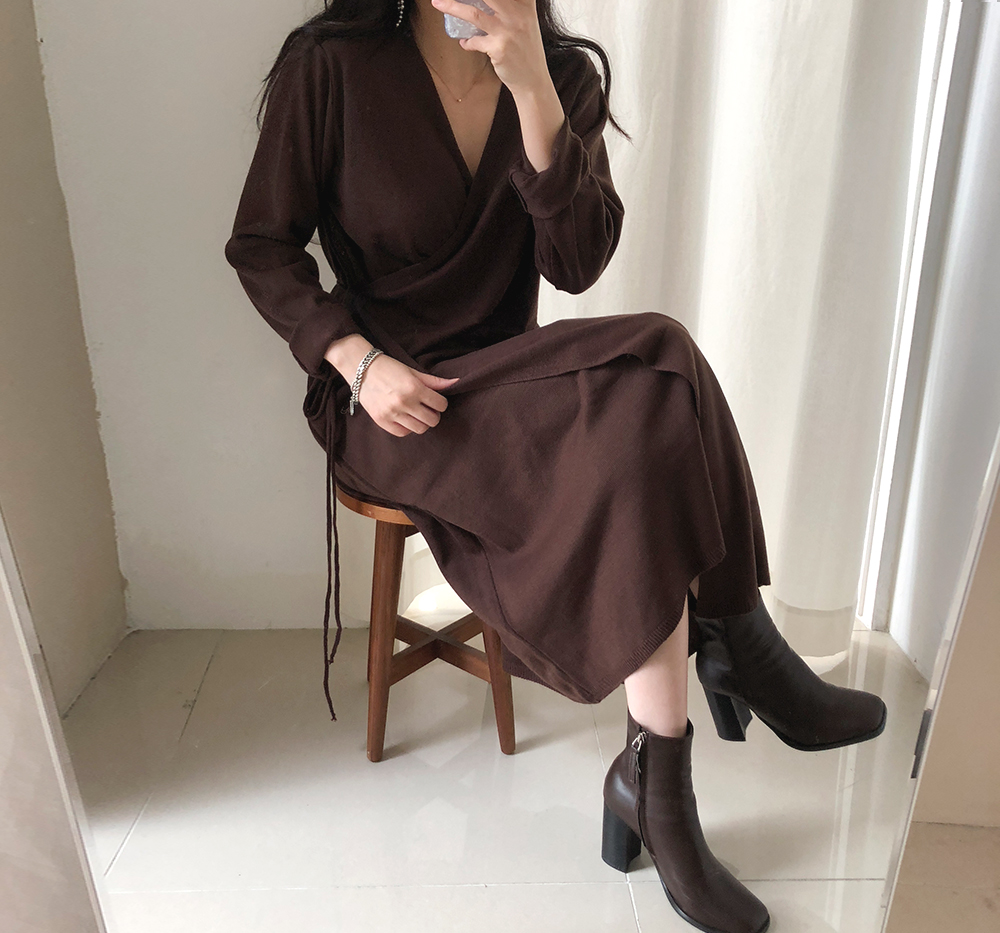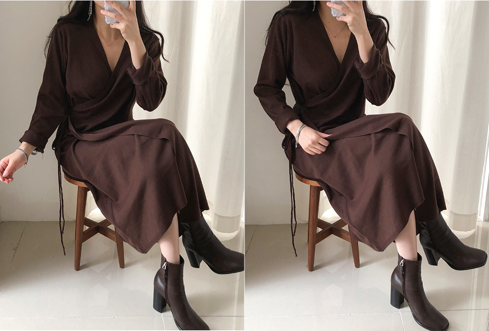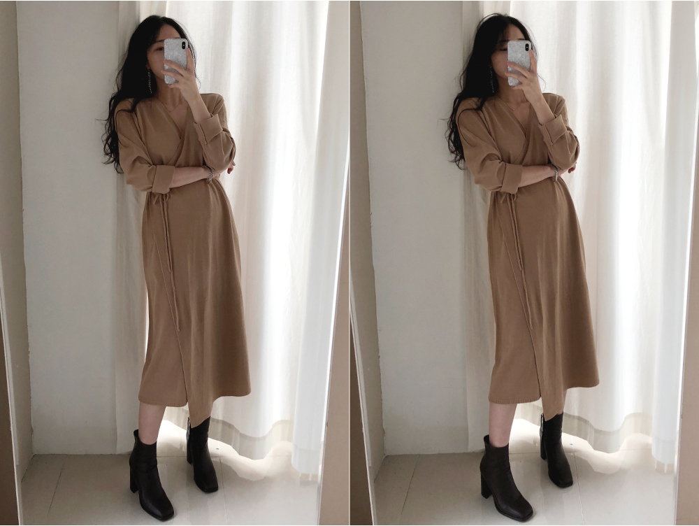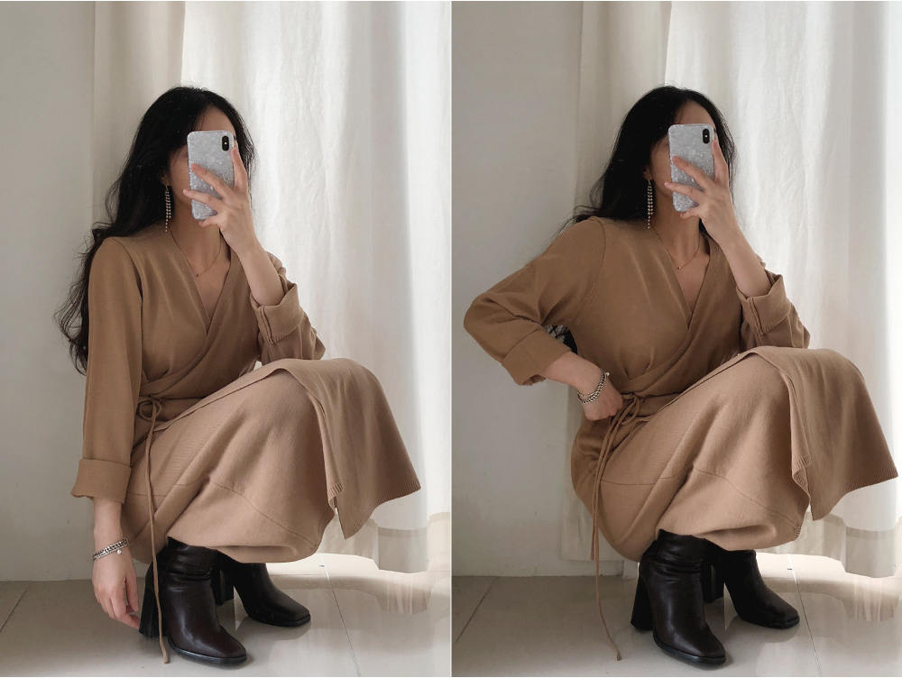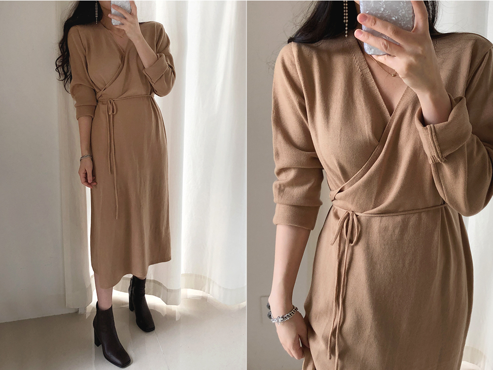 보들보들한 촉감의 랩 니트 롱원피스 소개해드려요.