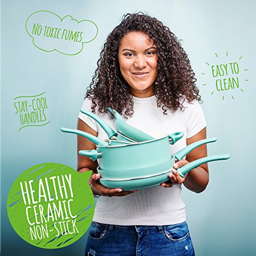 FREE YOUR HEALTHY CHEF - Our cookware is made of Thermolon® ceramic non-stick, manufactured free of PFOA, PFAS, lead or cadmium. Even if you accidentally overheat your pan, toxic fumes will not release
