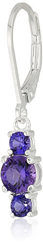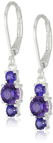 Sterling Silver June Birthstone Round Created Alexandrite Sapphire 5mm and 3mm Three Stone Dangle Lever Back Earrings