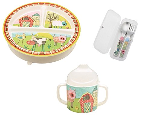 -. Title : Sugarbooger Divided Plate, Sippy Cup, and Silverware Set-Farm
