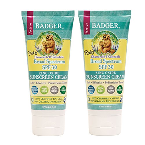 -. Title : Badger SPF 30 Baby Sunscreen Cream (Pack of 2) with Non-Nano and Uncoated Zinc Oxide, Chamomile and Calendula Extracts, 2.9 fl. oz.