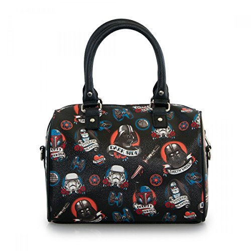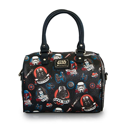 Studio : Loungefly Publisher : Loungefly Product Description Star Wars is the most famous story in the galaxy! It has become the ultimate in sci-fi fantasy and second to none in popularity. With time fans will gravitate to either the the Jedi force or the dark side. This bag features an all over print with a little tattoo flare. 0