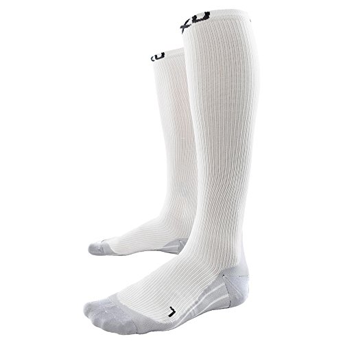 -. Binding : Sports -. Brand : 2XU -. Department : mens -. Feature : Race Socks enhance blood flow, and support and stabilize calf and key muscles in lower leg during training and competition / Graduated compression engineering promotes increased circulation; allows muscles to operate more efficiently, with greater power and less fatigue / Also promotes increased circulation to more efficiently minimize blood pooling in the lower leg and foot / Channel air and wick moisture away from skin; linked toe cage further enhances comfort / Machine washable; made of 80% nylon and 20% sport lira -. Label : 2XU -. Manufacturer : 2XU -. Model : UA1368e -. ProductGroup : Sports -. ProductTypeName : SPORTING_GOODS -. Publisher : 2XU -. Studio : 2XU -. Title : 2XU Unisex Adult Compression Race Sock