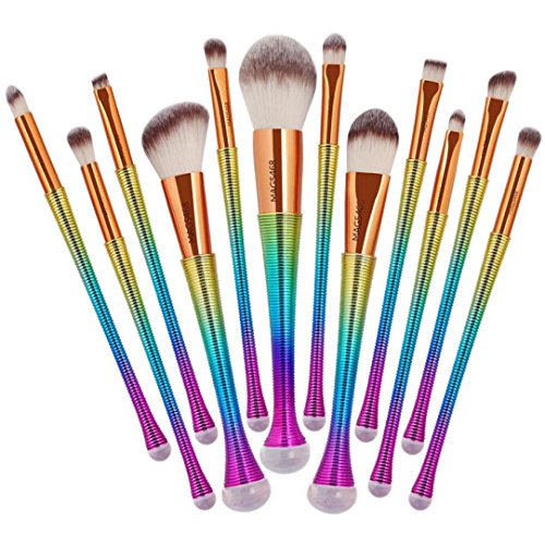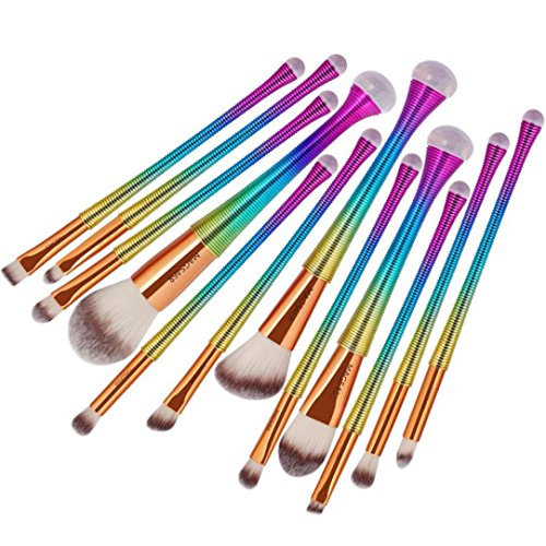 - ♣COMPLETE MAKE UP BRUSH KIT: 12pcs mermaid make up brush kit will meet your different makeup applications, such as eye shadow, foundation, concealer, blush, etc. It is also ideally apply to liquid, powder or cream cosmetics to create your personalized makeup looks as well as show your natural beauty.