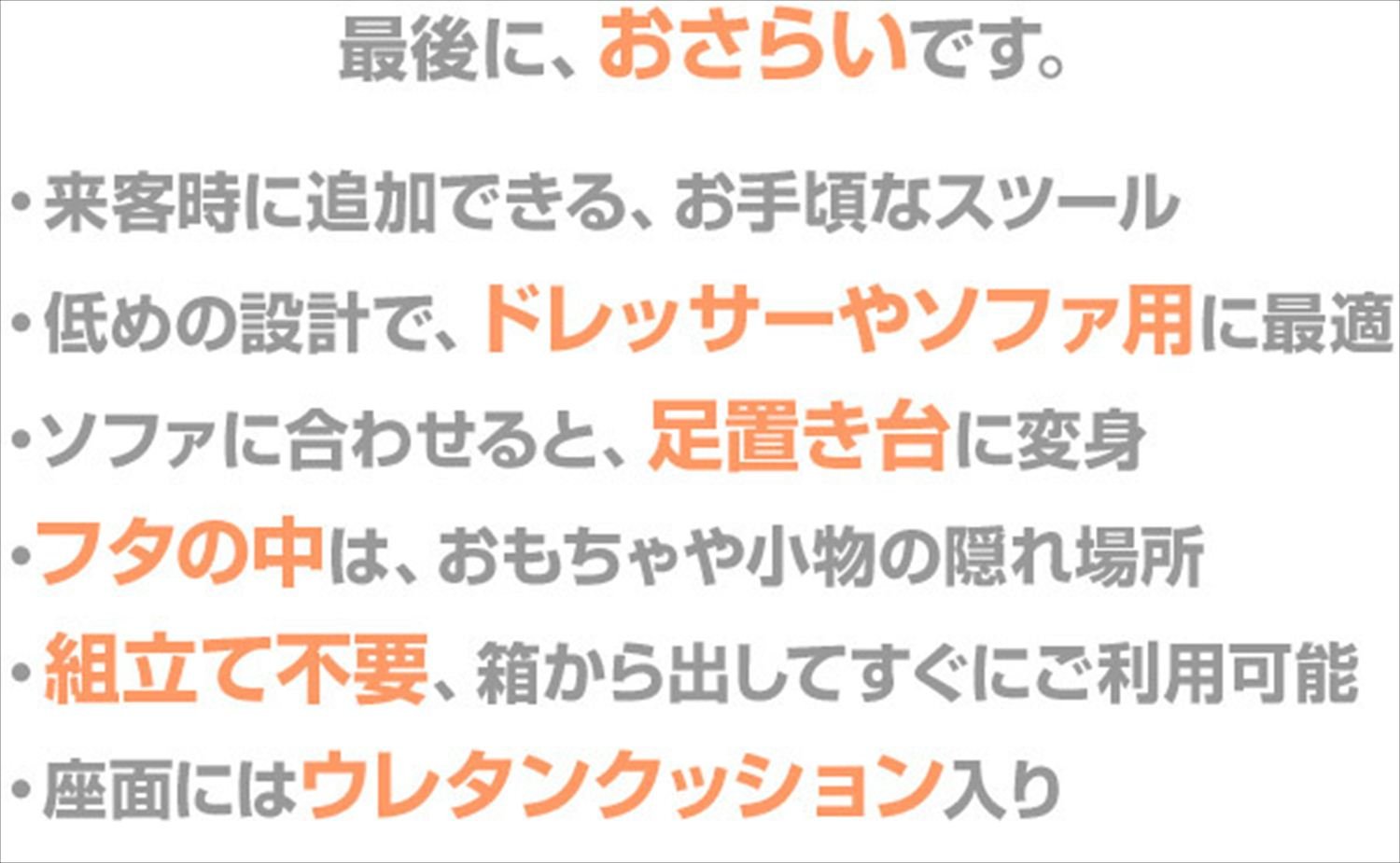 ● Completed item ● Chair, ottoman, storage, convenient stool with 3 functions with 1 unit ● When you raise the seat, you can store things inside ● With a seat height of 37 cm,