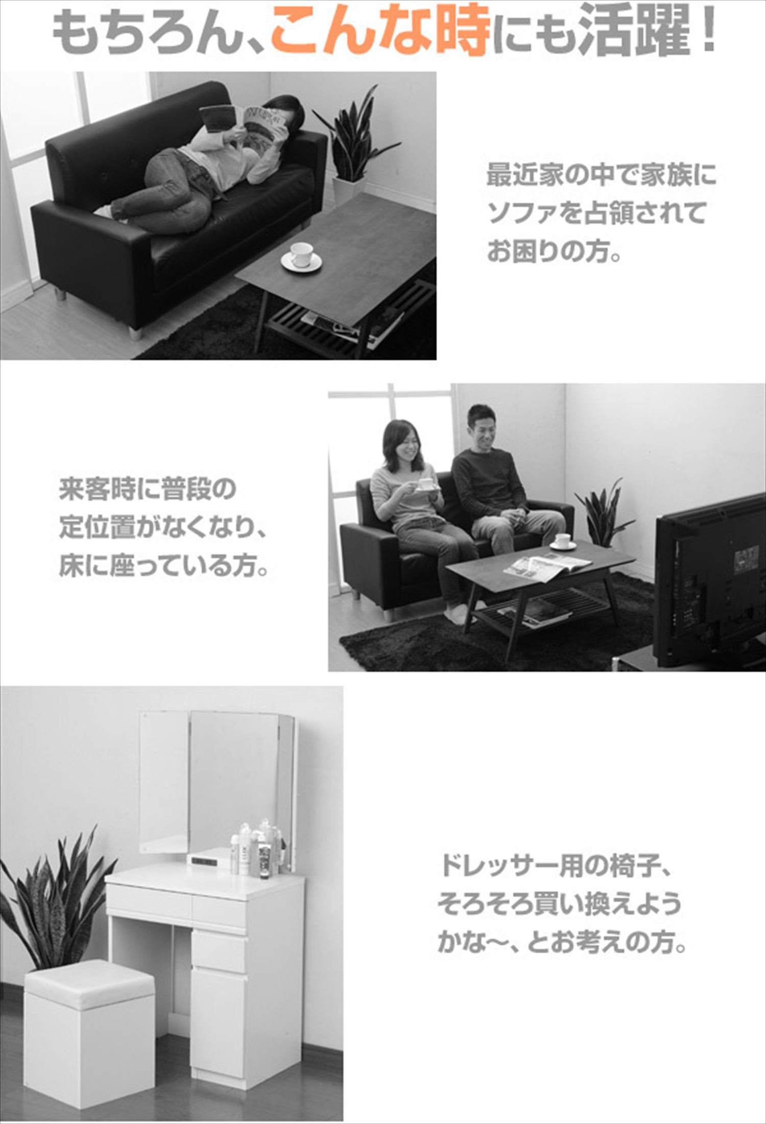 Design according to the sofa ●, convenient as ottoman (footrest) ● greatly used during makeup, such as a mirror stand and a dresser ● Inside dimensions of the storage part: width 29 Length 29 depth 28 cm ● seat thickness 6.5 cm