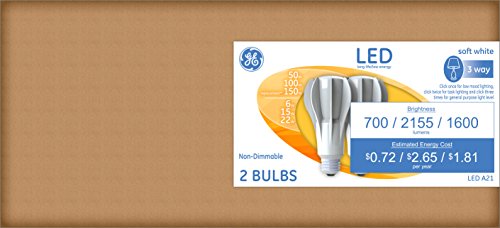 GE Lighting 37656 3-Way Non-Dimmable LED 50/100/150-watt replacement A21 Bulb with Medium Base, Soft White, 2-Pack