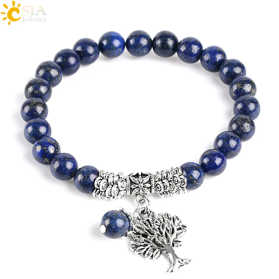 Bracelets Feature:Round Stone Beaded + Tree of Life Charm + Elastic Chain