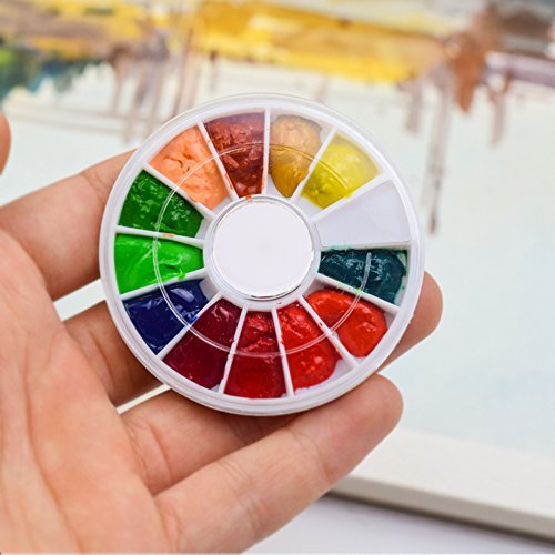 BCP 6pcs Mini 12 Wells Round Plastic White Plate and Transparent Cover Watercolor Palette Storage Case Art Paint Tray Plastic Mixing Palette Box