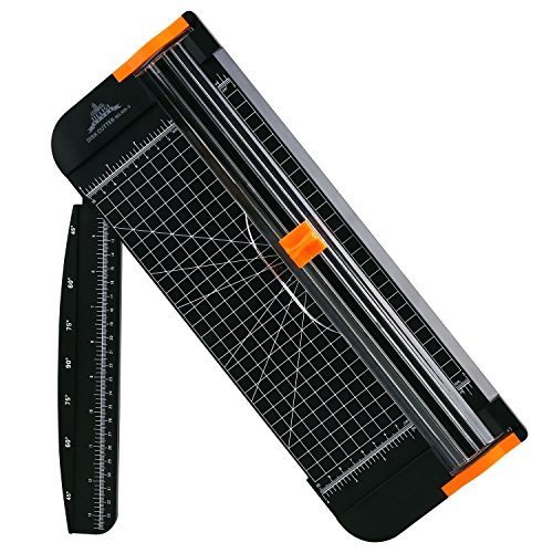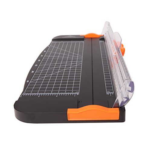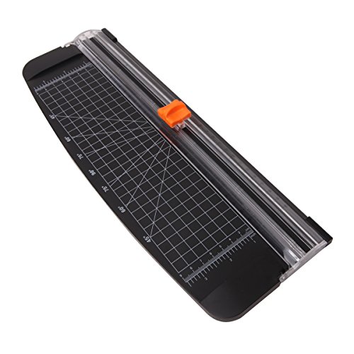 [Description] No touch safety design protects fingers away from any dangerous operation. And cutting head could be changed with Replacement. Capable of cutting a 45-degree to 90-degree angle.Max cut 12 sheets paper (80g/m2) _ Perfect for mixed media projects! Patented Track System interlocks the blade and rail for cuts that are straight and steady. Plastic cutting surface improves scale visibility for accurate measurements. Sleek_ lightweight & portable. Designed for standard cutting of paper_ photos or labels