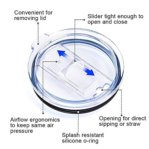 PIPIHUA Spill Proof and Splash Resistant Tumbler Lid with Slider Closure for Yeti Rambler and RTIC Tumblers Splash Proof Lid- 2 Pack(20 oz)