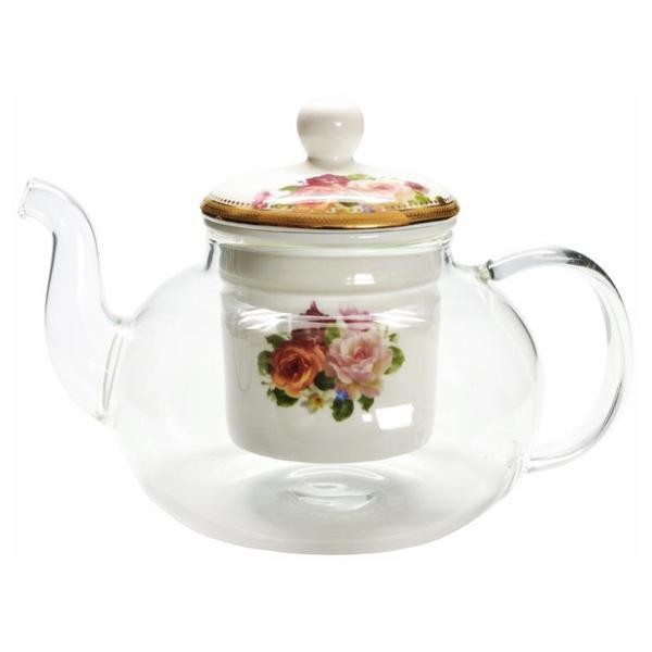 ポットのガラスから見える茶こしのバラ柄がとてもオシャレ!!目でも楽しめるポットです。