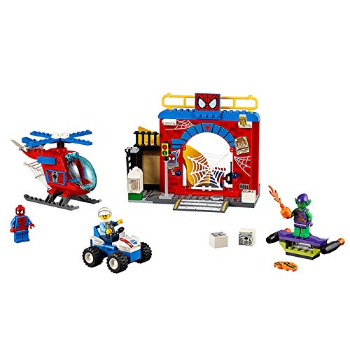 -. Feature : Mit 3 Minifiguren: Spider-Man(TM), Grüner Kobold und Polizist / Enthält eine Straßenszene, ein einfach zu bauendes Spider-Man(TM) Versteck mit Rutsche, Spider-Mans Hubschrauber, den fliegenden Gleiter des Grünen Kobolds und ein Polizeimotorrad / Der Hubschrauber ist ausgestattet mit Drehrotor, Cockpitfenster zum Öffnen und Ladeluke / Als Zubehör sind Spider-Mans Netz und Schnur, der Kürbiswerfer des Grünen Kobolds, eine Ampel und Zeitungsstapel enthalten / Größere Elemente - basierend auf dem L.E.G.O Stein - garantieren schnellen Erfolg beim Bauen und Spaß beim Spielen