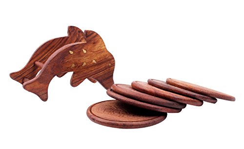 - Set of 6 coasters are made from strong and durable Indian Rosewood - one of the finest richly hued timber available and comes in a skillfully carved dolphin shaped holder.