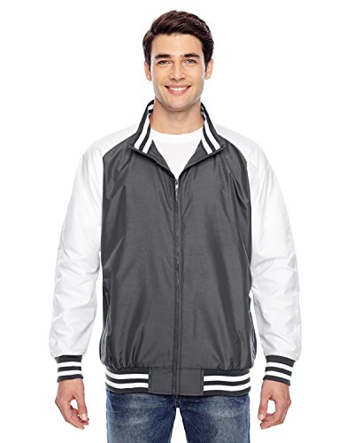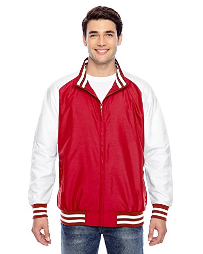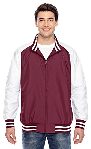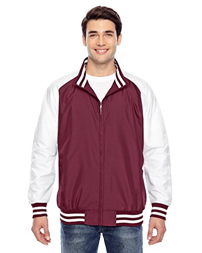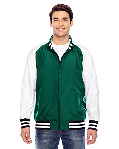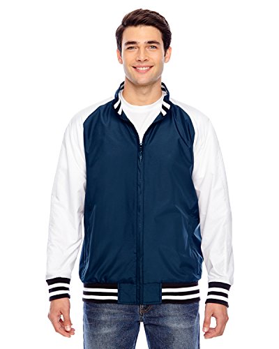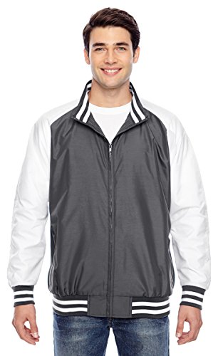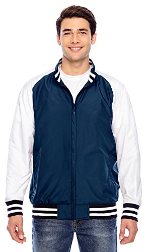 Binding : Apparel Product Description 2.8 oz., abrasion-resistant 100% nylon taslan shell with polyurethane coating for enhanced wind- and water-resistance; 3.2 oz., 100% polyester dyed-to-match tricot big hole mesh lining in body; 100% polyester white taffeta lining in sleeves; striped 3½" 1x1 rib knit trim at bottom hem, cuffs and inside collar; EZEM zipper at inside side seam and inside left-chest for easy decoration access; center front dyed-to-match old school molded plastic zipper; molded plastic zippers at front welt pockets; 0