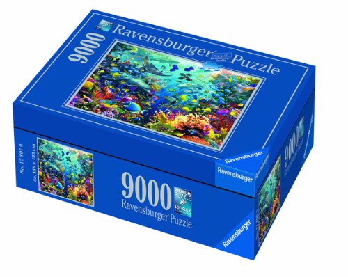 -. Author : Varios -. Binding : Toy -. Brand : Ravensburger -. EAN : 0658108605360 -. Feature : Puzzle measures 76" x 54" / Puzzles are fun - on your own, or with family and friends / Relax from your busy life and build a beautiful image and a new memory -. Genre : strategy -. IsAdultProduct : 0 -. ItemPartNumber : RAV17807 -. Label : Ravensburger -. LegalDisclaimer : Must be at least 18 to purchase. -. Manufacturer : Ravensburger -. Model : 17807 -. MPN : 17807 -. PackageQuantity : 1 -. PartNumber : 17807 -. ProductGroup : Toy -. ProductTypeName : TOYS_AND_GAMES -. PublicationDate : 2014 -. Publisher : Ravensburger -. ReleaseDate : 2012-01-01 -. Studio : Ravensburger -. Title : Underwater Paradise 9000 Piece Puzzle -. UPC : 798527737942 -. Warranty : No Warranty