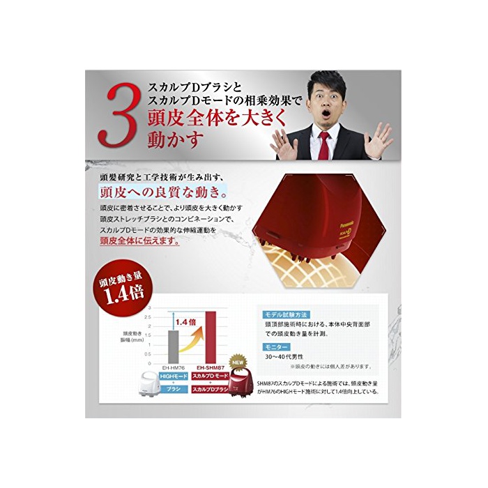 <두피 에스테틱 특징3>스컬프D브러시와 스컬프D모드의 상승효과에【두피 전체를 크게 움직인다】두발 연구와 공학 기술이 만들어 낸다,두피에의 양질인 움직임.