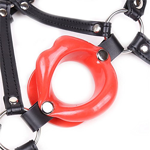 -. Title : Women Adjustable Black Strap Helmet Leather Face Harness With Red Vermilion Border Mouth