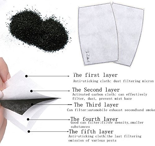 Adult 5 Layers PM2.5 N95 Activated Carbon Filter Insert Protective Filter Media Insert (20) (Adult)