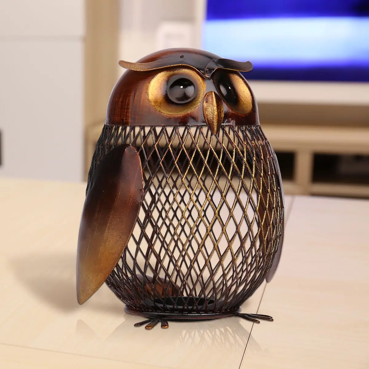 TOOARTS Escultura Owl Shaped Metal Coin Box Home Furnishing Articles Crafting Art Home Decoration Accessories