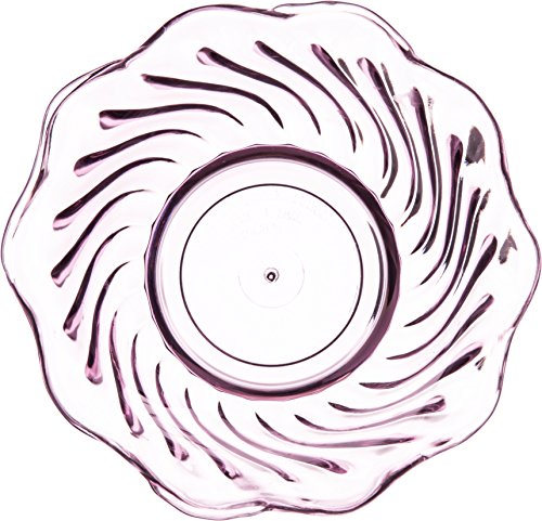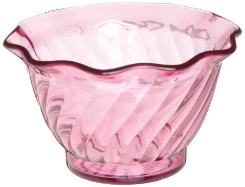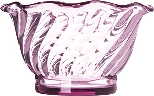 The Carlisle ice-pink SAN tulip dessert dish has a swirling tulip design that allows stacking, is dishwasher safe, and is NSF listed. The material is styrene acrylonitrile (SAN) for rigidity and resistant to breaking, and is dishwasher safe. The overall dimensions are 3-3/4 x 2.19 inches (diameter x height), and it holds 5 fl. oz.
