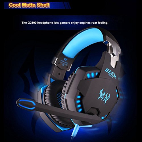 Megadream Kotion Each G2100 Vibration 3.5mm LED PC Gaming Bass Stereo Noise Isolation Headset Headband With Mic & Volume Control for Laptop Computer Skype Online Chat Blue & Black