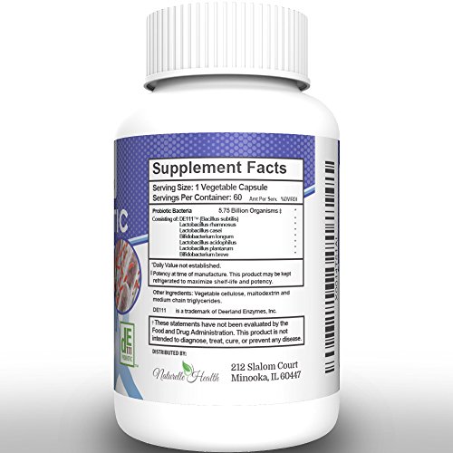 Naturelle Health Fast Acting Probiotics Supplement, Deep Penetrating with Highest Level of DE111, 7 Varied Probiotic Strains, 60 Vegetarian Capsules