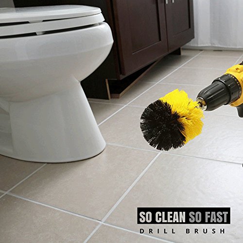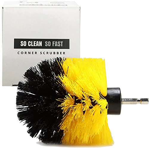Corner Drill Brush for Cleaning Wall Corner, Rim & Tight Space - Power Scrubber Attachment for Drill - Medium Stiff