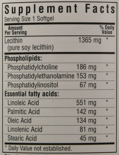 Bluebonnet's lecithin 1365 mg soft gels contain a natural combination of high potency phospholipids and naturally occurring fatty acids from 100 percent pure, natural, soy lecithin oil.Feature