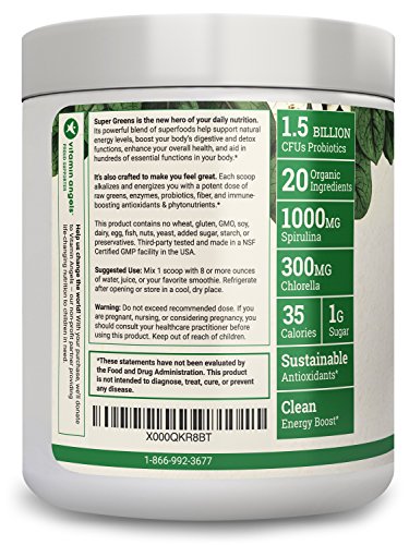 HONEST, NATURAL INGREDIENTS - We believe that nutritional supplements should be like mother’s milk: natural, full of good stuff, but nothing extra and easy for your body to absorb. We are relentless about sourcing the best, most natural, most ethically produced ingredients available. Scan over the ingredient list and you’ll see 20+ organic ingredients. Super Greens is a non-GMO green energy powder.