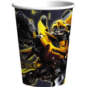 Barricade and Bumblebee battle on the Transformers Paper Cups. Each cup holds 9oz of your favorite hot or cold beverage. Each package contains 8 cups.